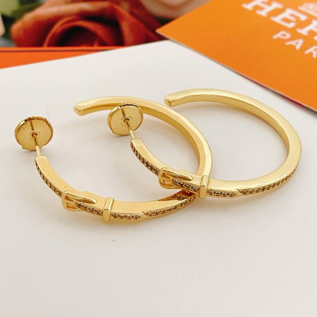 He Mes最新款金色皮带耳钉 一致Z批黄铜材质,非常的上镜设计很特别值得入手高级手工坊系列