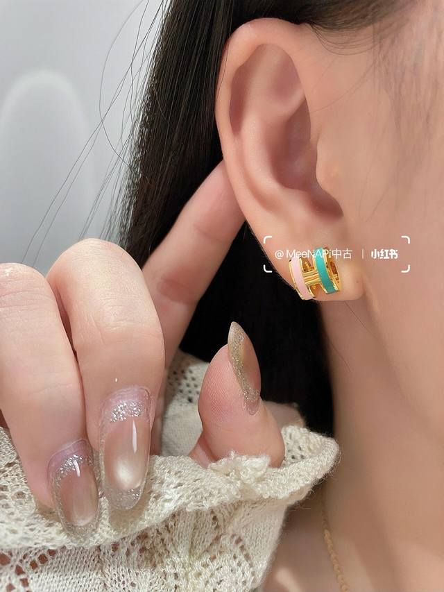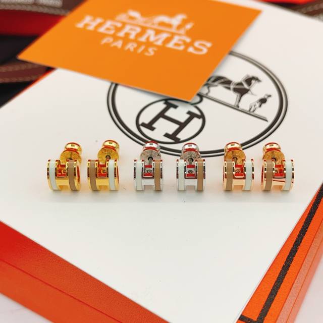 He095金色 He096银色 He094玫瑰金 He Mes最新款三色茶拼白H耳钉 一致Zp黄铜材质,非常的上镜设计很特别值得入手高级手工坊系列