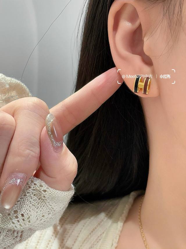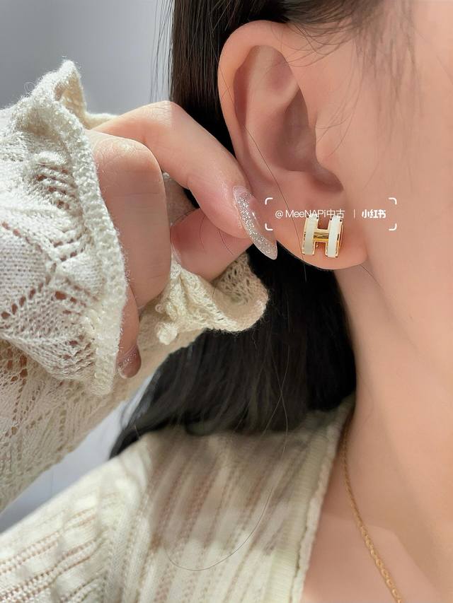 / He095金色 He096银色 He094玫瑰金 He Mes最新款三色茶拼白H耳钉 一致Zp黄铜材质,非常的上镜设计很特别值得入手高级手工坊系列