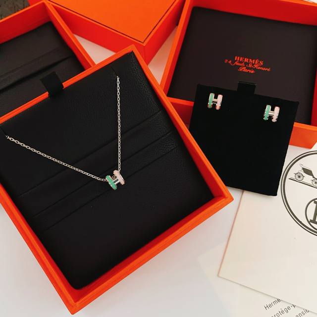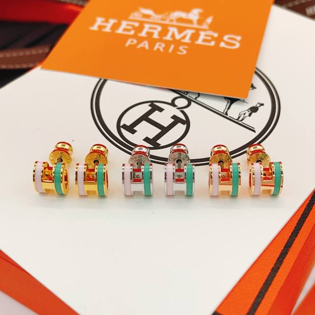 He100 He Mes最新款银色绿拼粉H耳钉 一致Zp黄铜材质,非常的上镜设计很特别值得入手高级手工坊系列