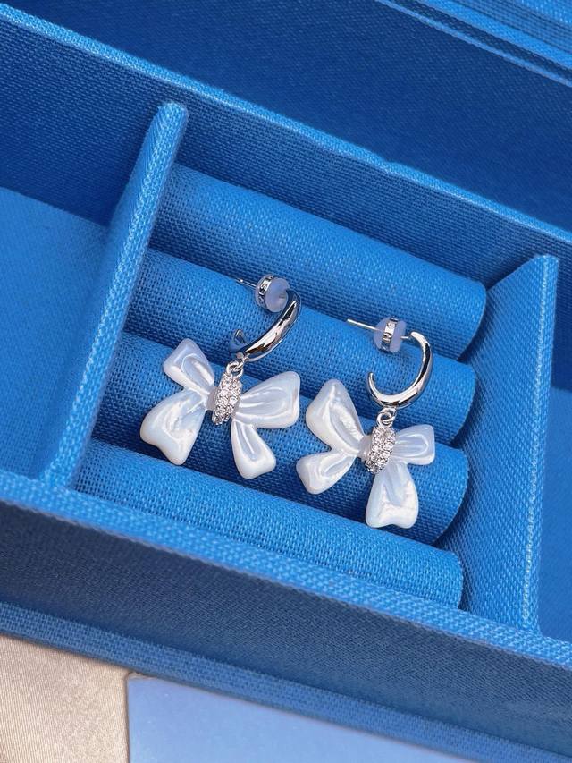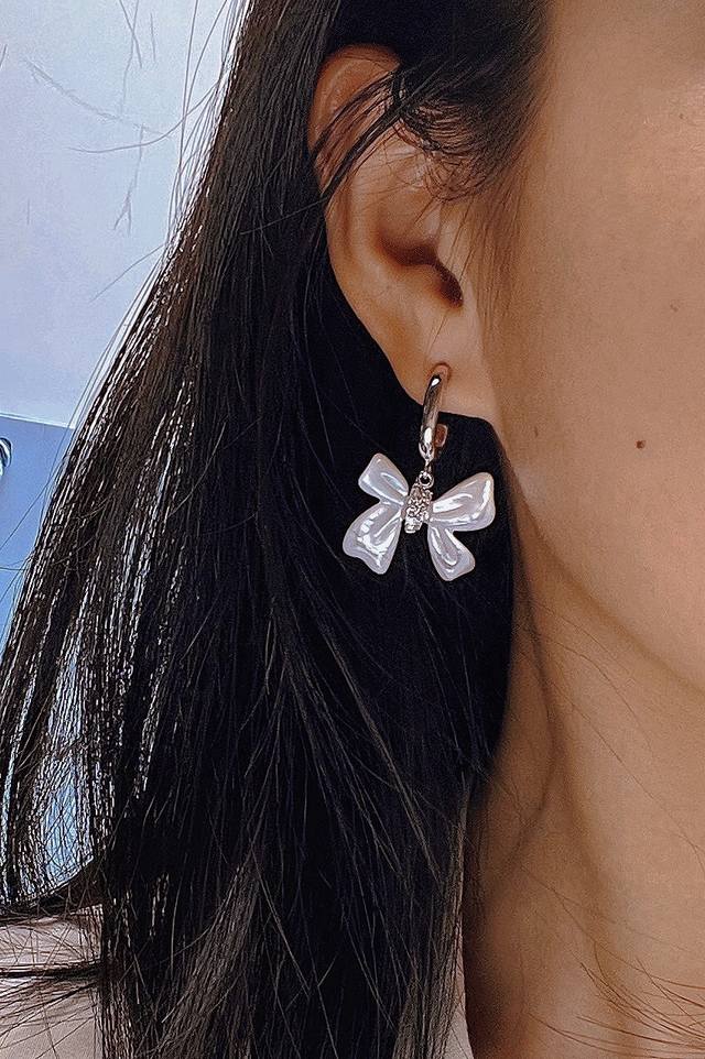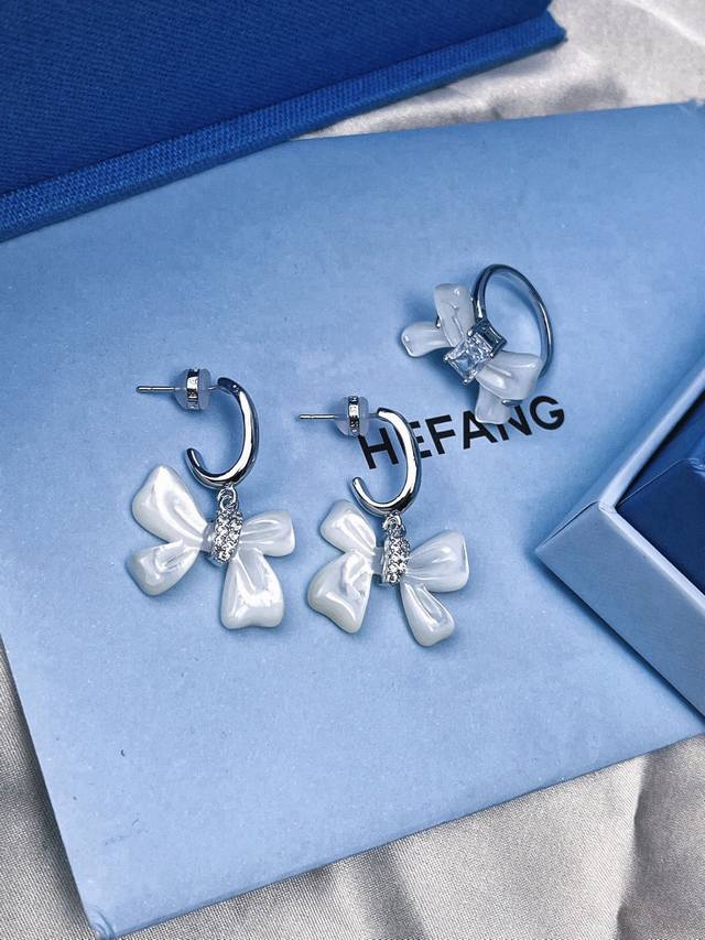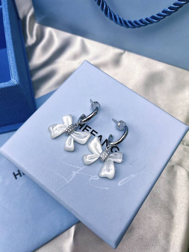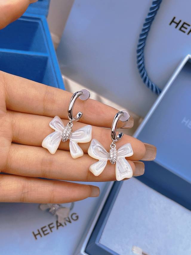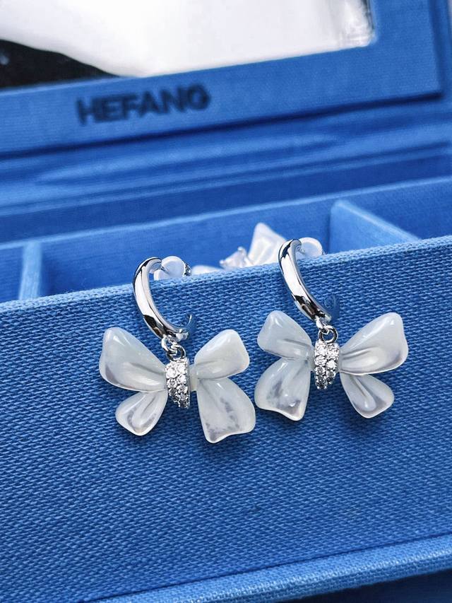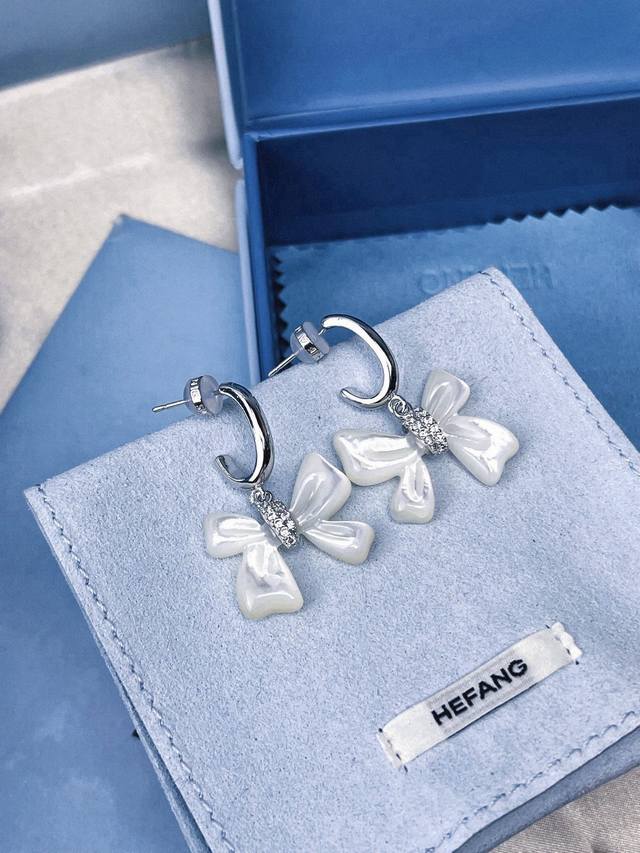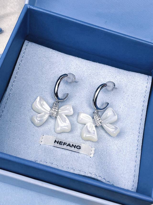 / Hefang何方贝母蝴蝶结耳环。