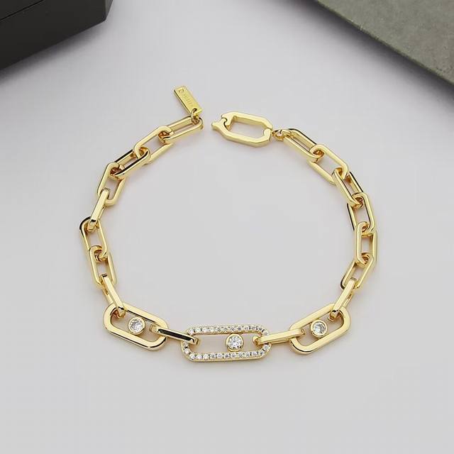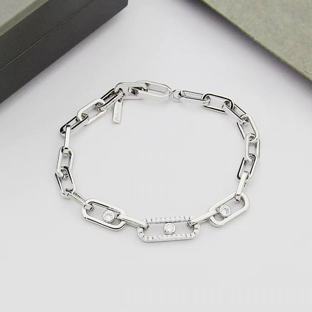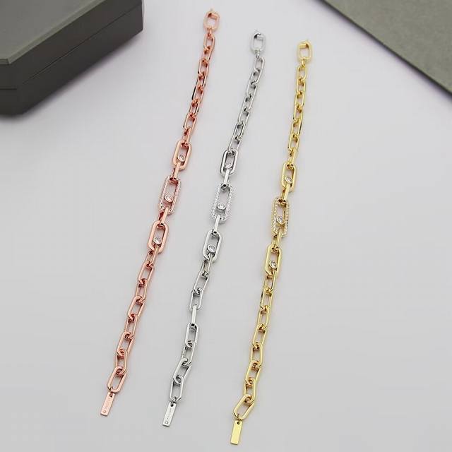/ Messika 梅西卡手链单钻 中性钻石手链滑动手链 纯手工一节一节焊接而成 亚金材质电镀18K金超赞工艺 百搭 夏日简约风 白金 玫瑰金 黄金手链