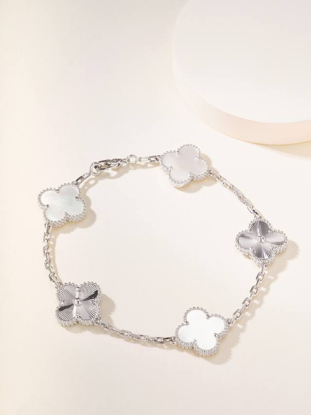 P价 DDD 新增3+2白贝母五花手链白金色 DDD