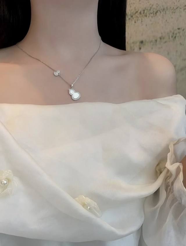 / Qeelin 最新款白色镶钻葫芦银色项链 一致Z批黄铜材质,非常的上镜设计很特别值得入手高级手工坊系列