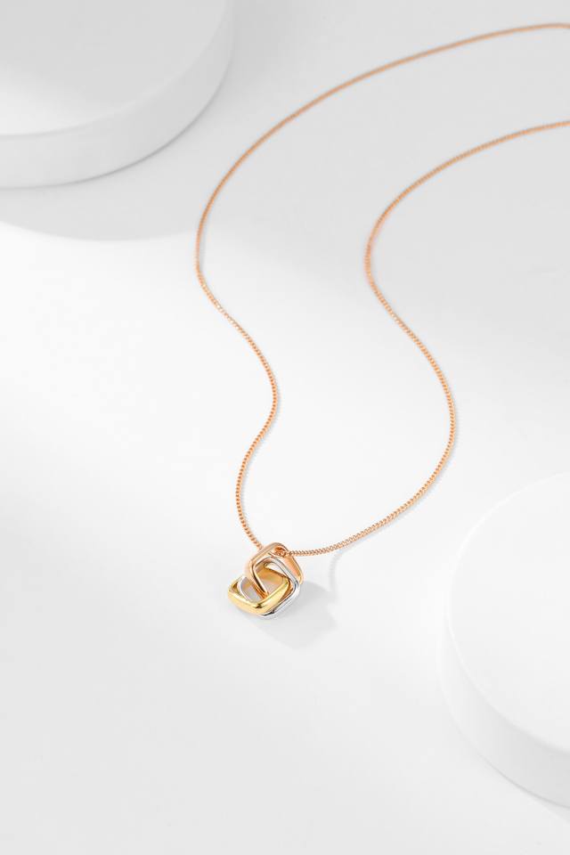 Trinity枕形三色环项链,Trinity系列珠宝相呼应,每个环圈都代表着我的不同身份,三枚环圈交织,犹如每一面的我都不可分割,互相联结交融,共同编织成不被限