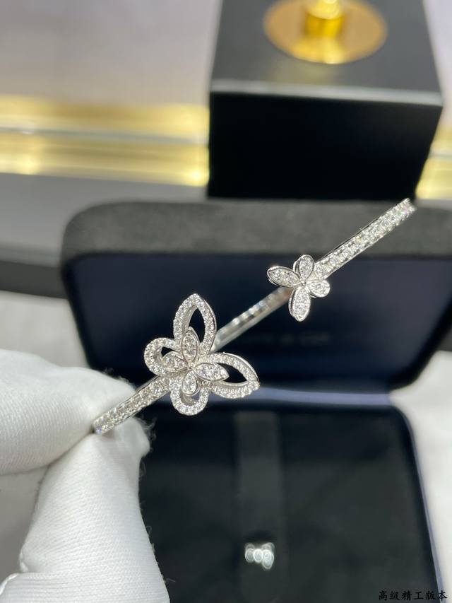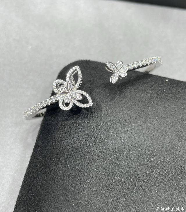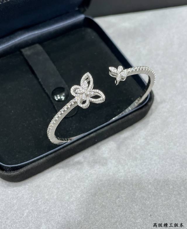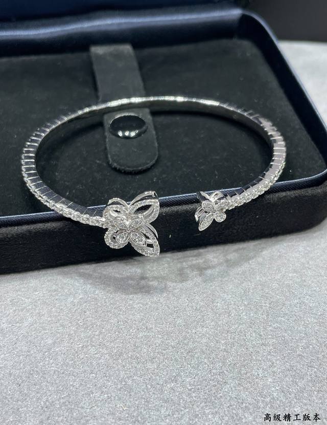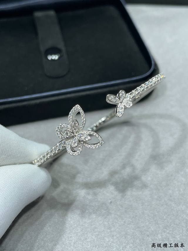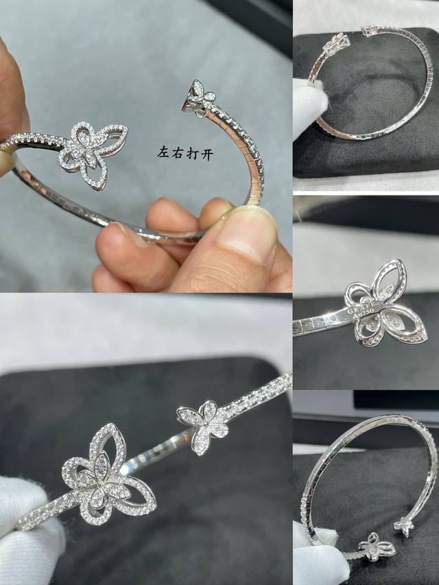 / V金材质 格拉芙新版蝴蝶开口手镯,高级珠宝作品 线条灵动的蝴蝶结或环绕指间、或在颈窝处闪耀、亦或在耳畔划出完美弧度,以大胆的风格演绎现代高级珠宝风格。