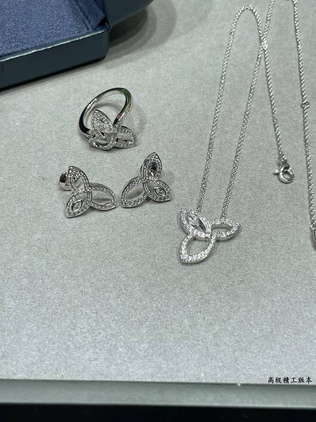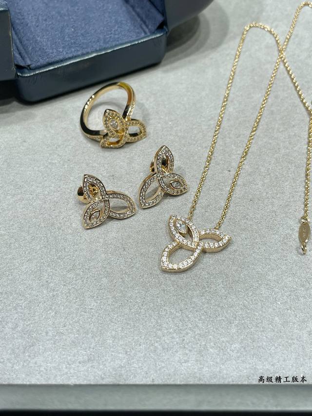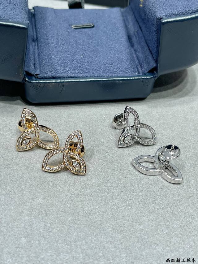/ v金材质 海瑞温斯顿三叶草Lily耳钉搭配飞碟耳塞 珠宝采用最顶尖的 锆石栩栩如生,精工的切割高端定制镶嵌高碳钻 Bling Bling 雍容的设计,奢华高贵,