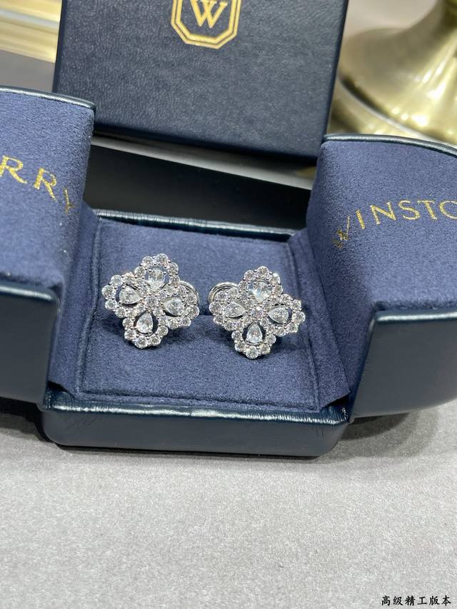 / V金材质 白钻 海瑞温斯顿满钻四叶草耳拍# Diamond Links系列钻石耳拍,她的一颦一笑,优雅迷人却又不失理性坚韧,与品牌标志性设计祖母形切工形态钻石相