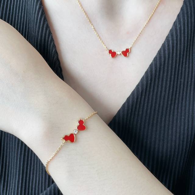 / V金材质 麒麟红玛瑙双葫芦手链,简约的线条刻画Wulu优美的形态,Qeelin X 黎贝卡独家发售限量版Wulu手链