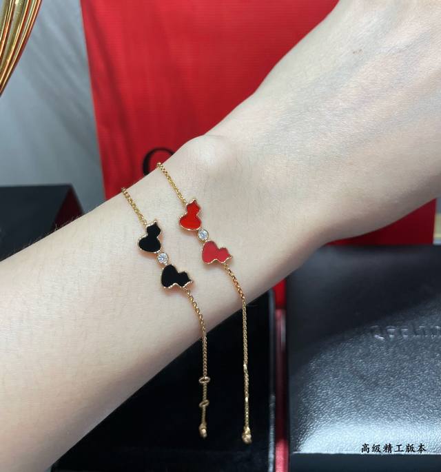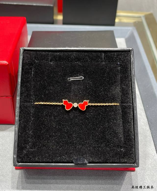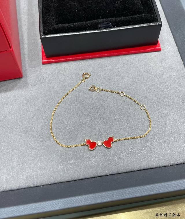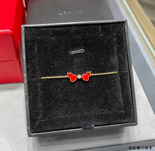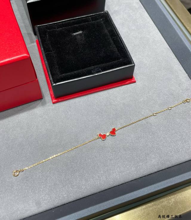 V金材质 麒麟红玛瑙双葫芦手链,简约的线条刻画Wulu优美的形态,Qeelin X 黎贝卡独家发售限量版Wulu手链