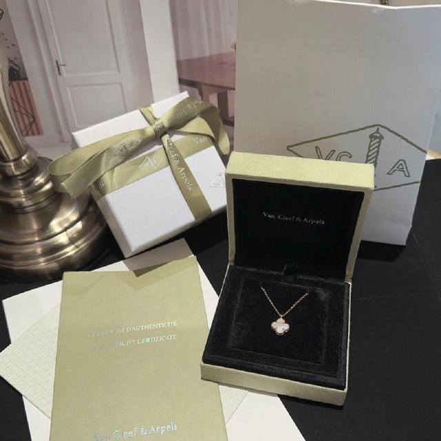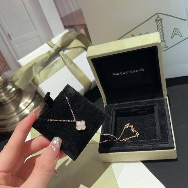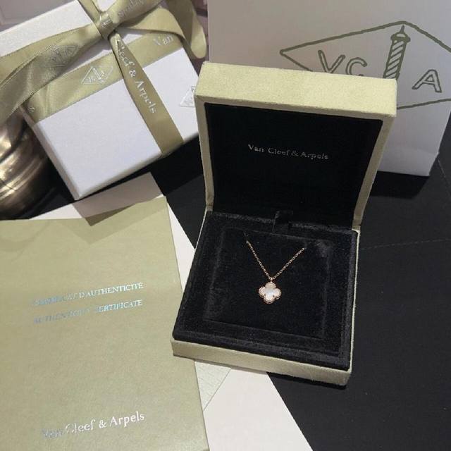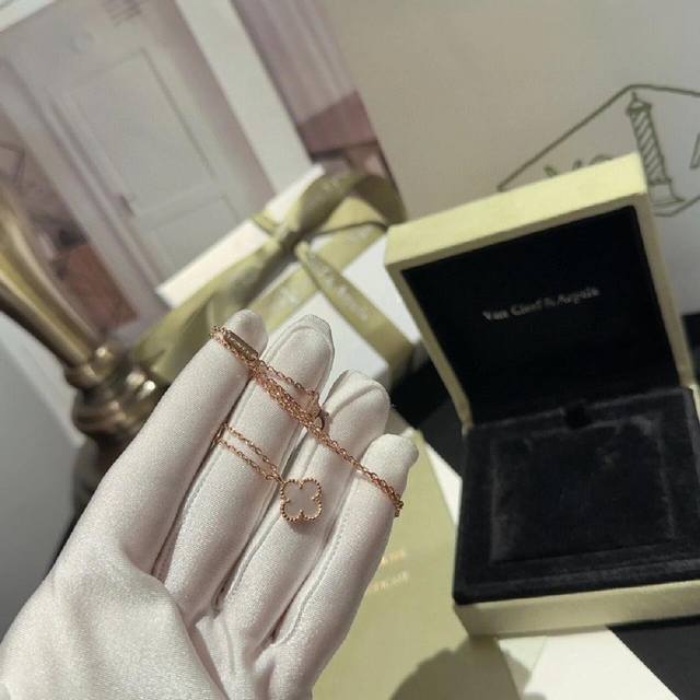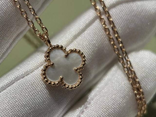 V金材质Vca玫瑰金迷你Mini白贝母单花项链 DDD