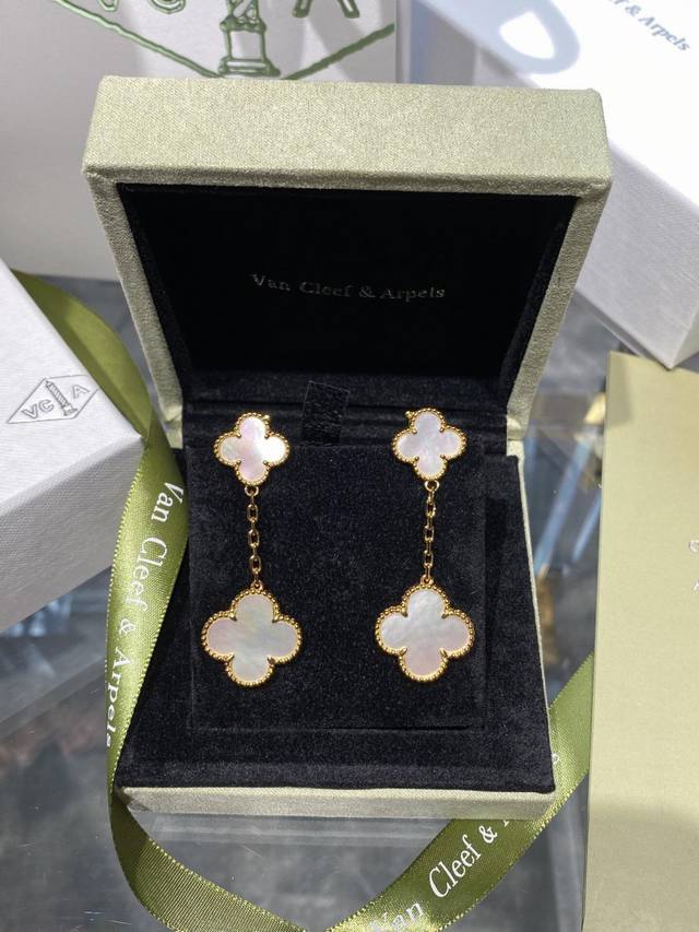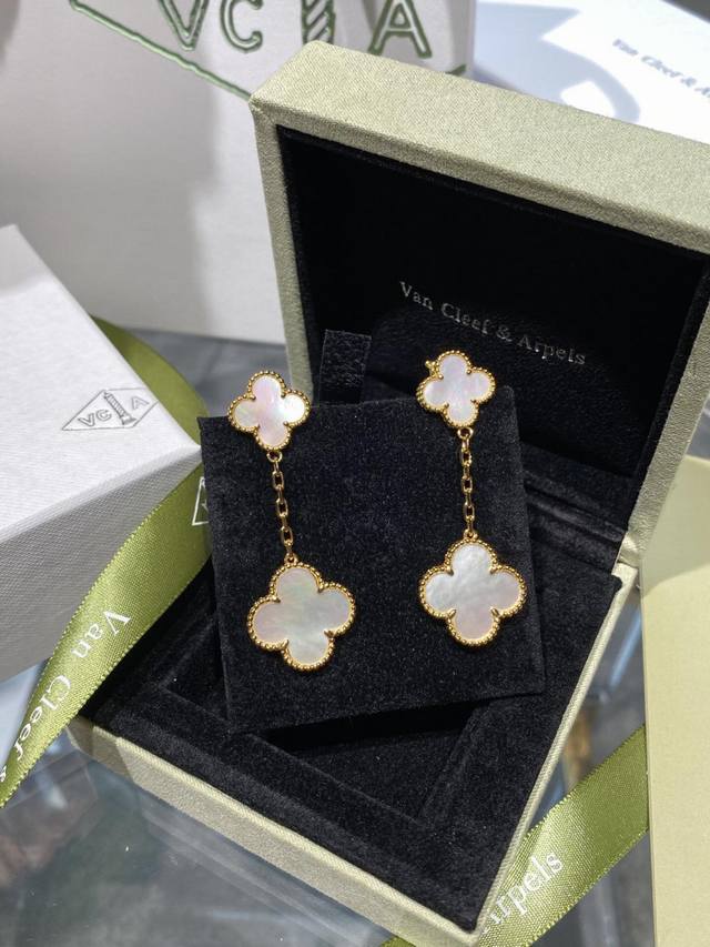 V金材质Vca白贝母双花耳拍