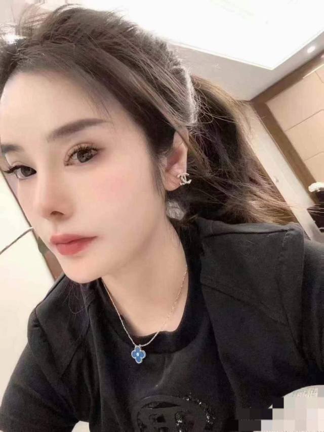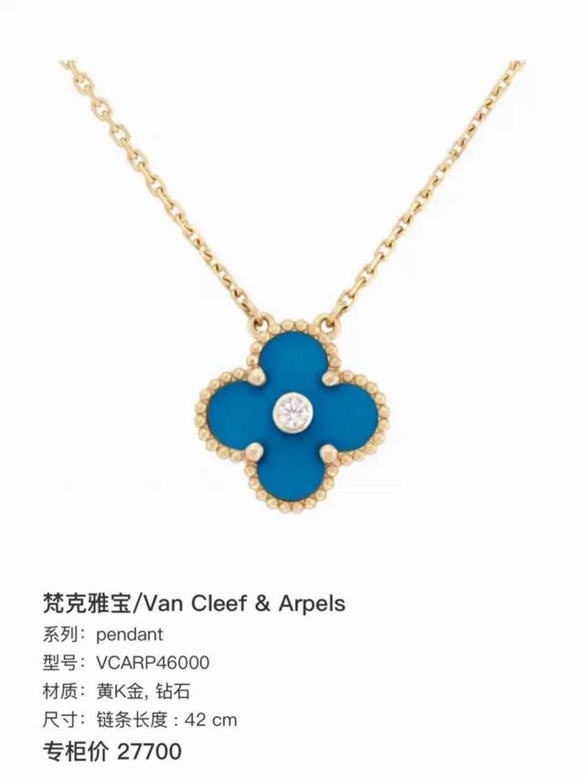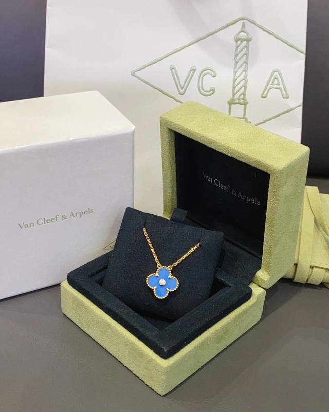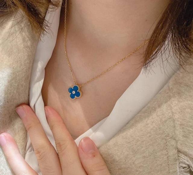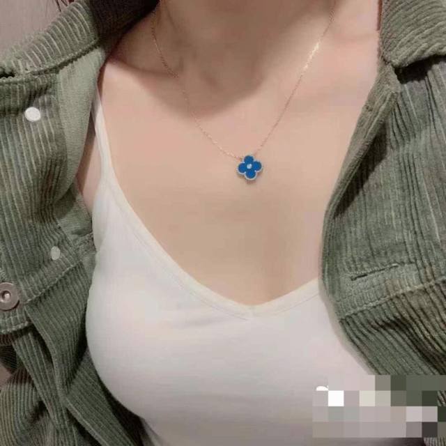 / V金材质Vca蓝玉髓四叶草单花项链