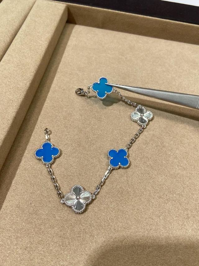 FFF V金材质Vca黄金色蓝玉髓间镭射五花手链 DDD