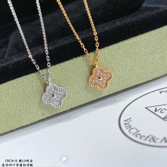 v金镀咪金 白金没货 代购级别 Vca 迷你 满钻四叶草 项链版型超级正,背面菱形钻孔,花型正底端工艺,满封后打字印!正版细节,市面上很多版都是错的!光泽非常好