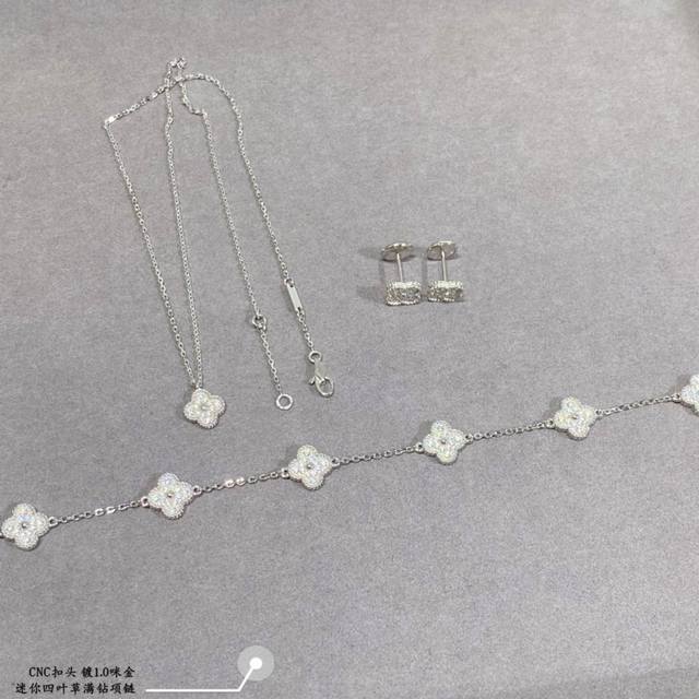 / v金镀咪金 白金没货 代购级别 Vca 迷你 满钻四叶草 项链版型超级正,背面菱形钻孔,花型正底端工艺,满封后打字印!正版细节,市面上很多版都是错的!光泽非常好