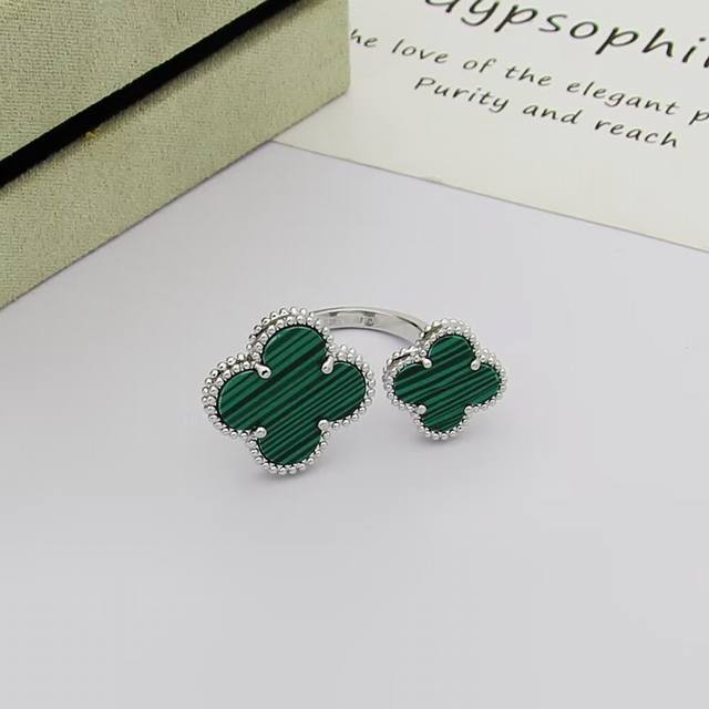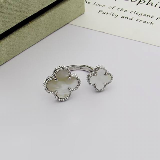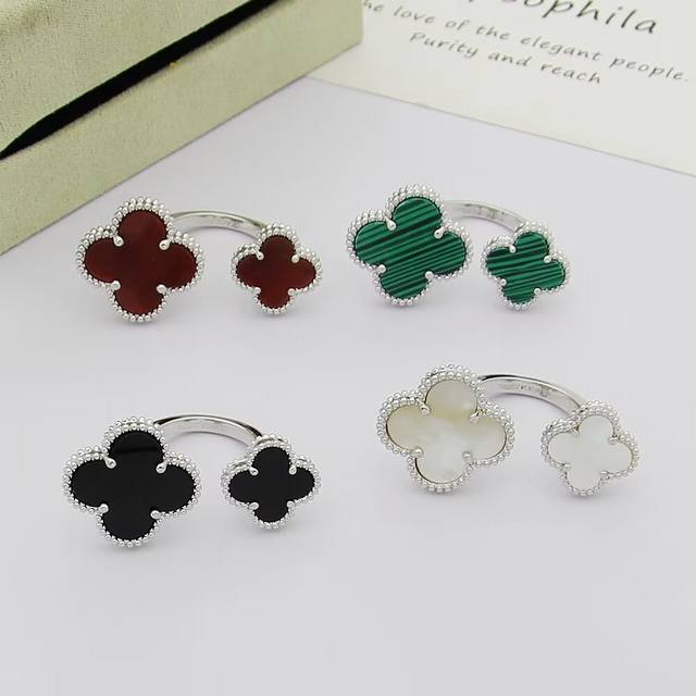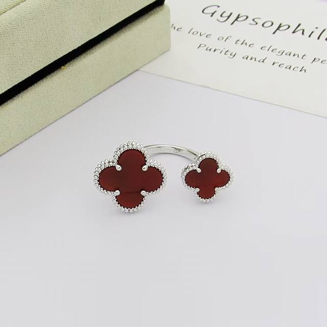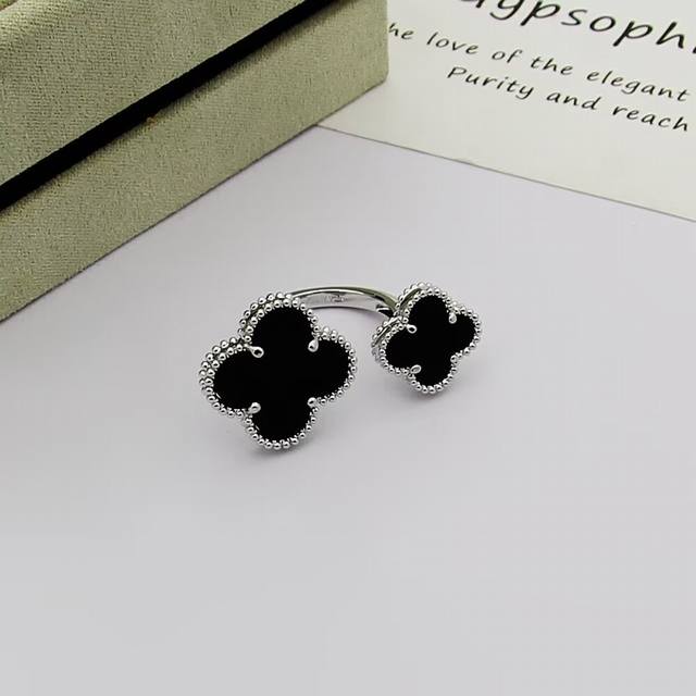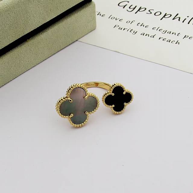 / Van Cleef & Arpels 梵克雅宝 四叶草戒指双花戒指。镶嵌搭配玛瑙。亚金材质开口均码