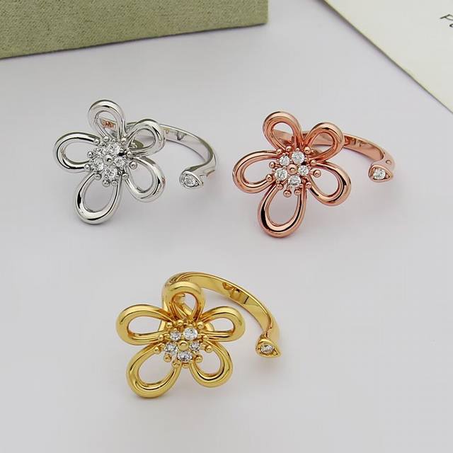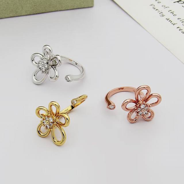 / Vca梵克雅宝戒指三叶草戒指Flowerlace 转动指间戒指到货开口均码
