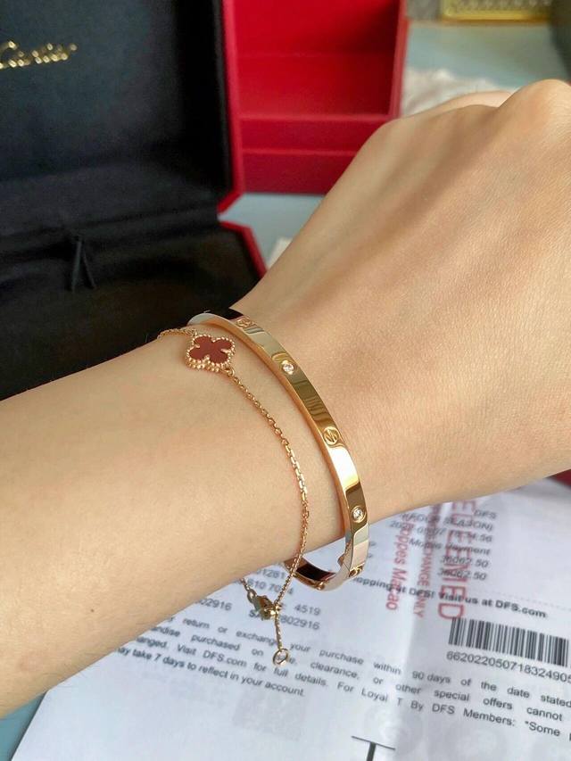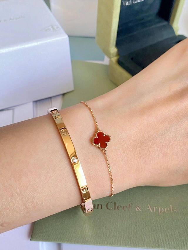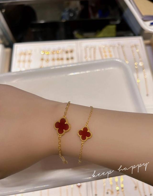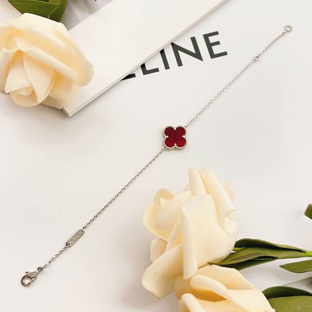Vs060 Vancleef*Arpel* 最新款红贝母四叶草大号银手链 一致Zp黄铜材质,非常的上镜设计很特别值得入手高级手工坊系列