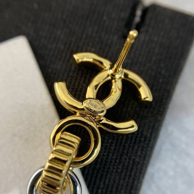 香 双色拼接双C耳环