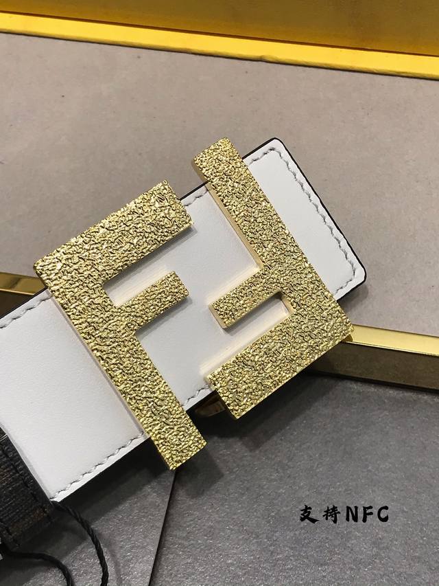 / 新款 Fd 宽38 Mm 支持Nfc 芯片扫描,标志造型皮带,原版小细纹F铆钉扣,进口原版 乳白色小牛皮配原版老花制成,镀金表面金属制品,品质保证,非市场通货!