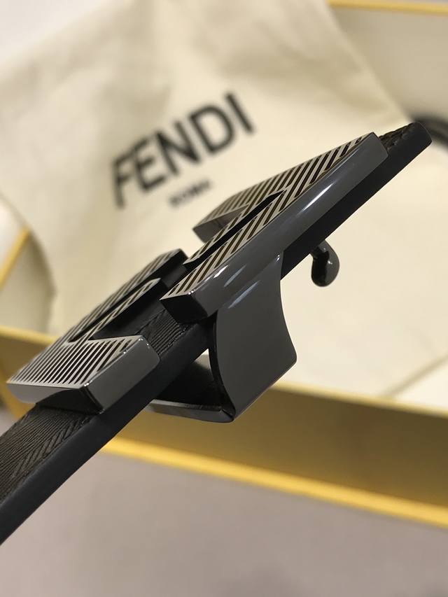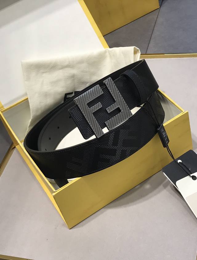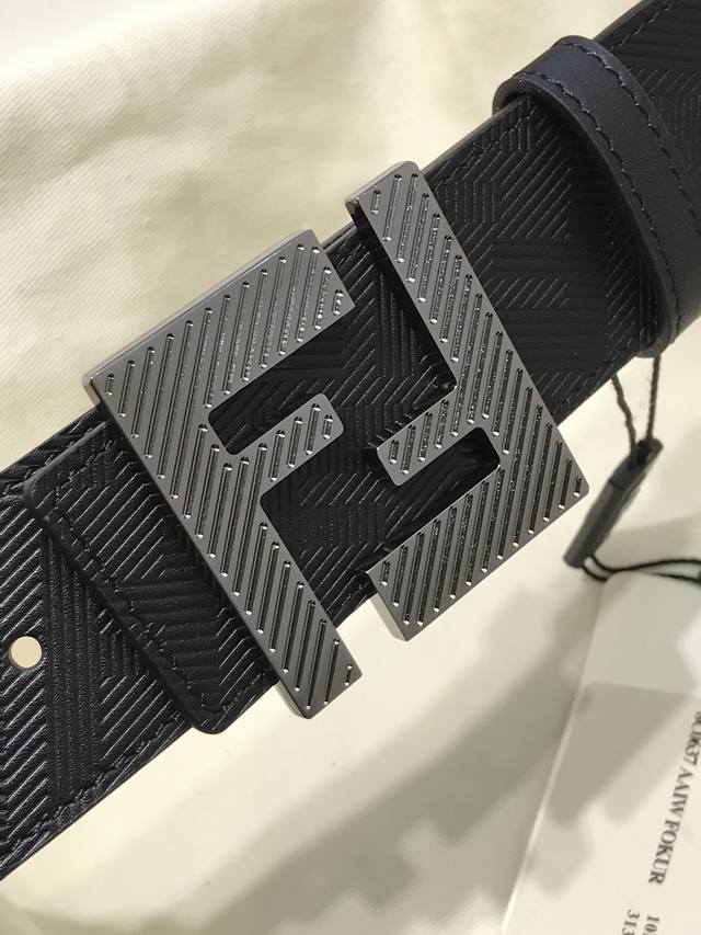 新款 Fd 宽38 Mm 支持Nfc 芯片扫描,标志造型皮带,原版渐变色双层F铆钉扣,进口原版 F手掌纹黑色小牛皮,镀金表面金属制品,品质保证 ,非市场通货!