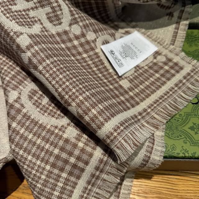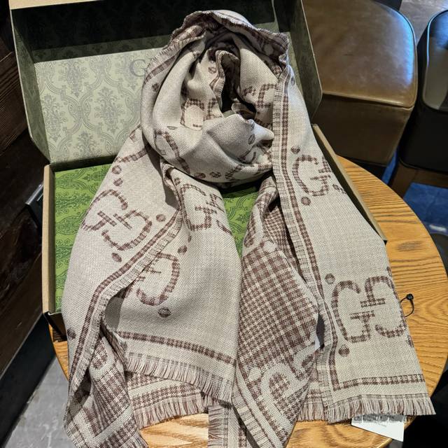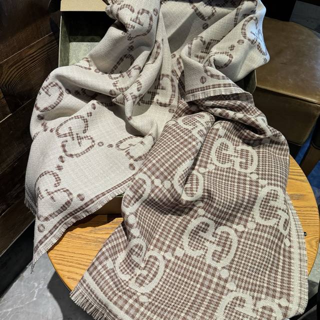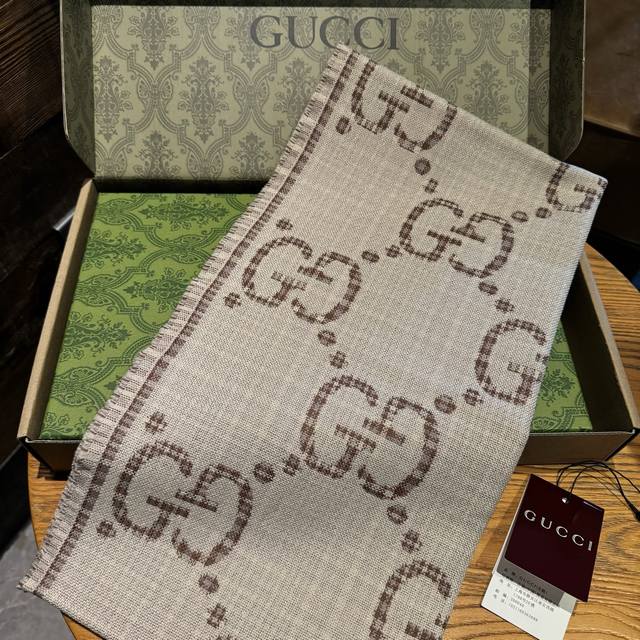 新色货专柜同步 双G提花双面披肩 款式经典,大方时髦,不过时,随便什么时候拿出来戴都好看。靓男靓女都可以用,Guci这款限量经典元素的新款披肩真的超重磅高端围巾提升气质的时尚力量,在我们的穿衣打扮当中,成为了整体造型加分的助力这种的美可以让人一瞬间气质脱胎换骨精工高密度字体无比清晰 面料为客供面料 和专柜一样 ,100%羊毛手感柔软丝滑有份量超级好看的一个款!正反面都是精彩,可以搭配出不同风格的个性搭配,可系可围可扎,真的随意造型,可以搭配各种服饰,可以通勤也可以搭配休闲装46*180Cm的尺寸非常好驾驭