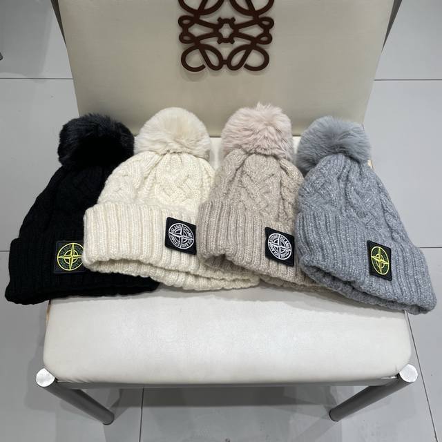 / 潮牌石头岛Stone经典爆款羊绒羊毛针织帽 秋冬新款毛球毛线帽,冷帽,小红帽爆款