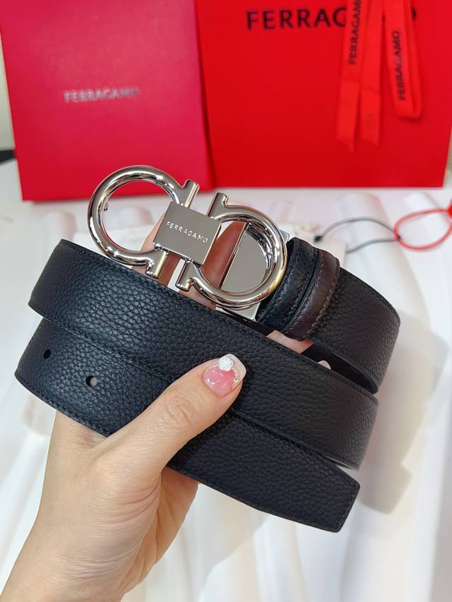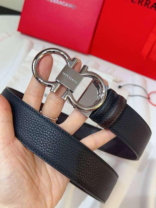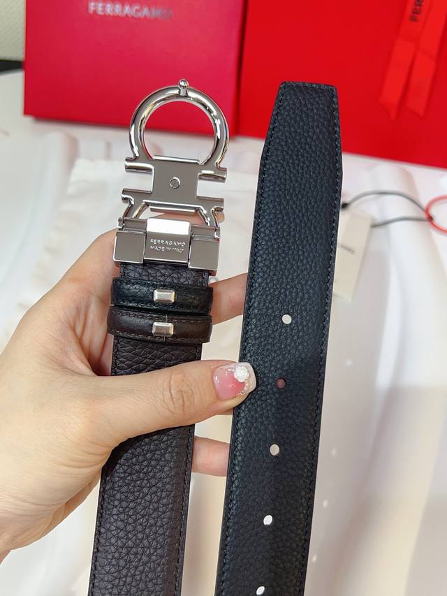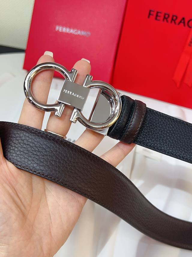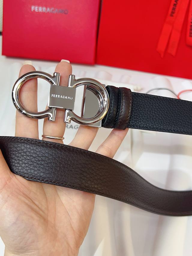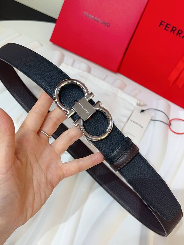 这款双面皮带风格优雅,采用双饰面设计,灵活演绎多变造型,时刻保持考究格调,可谓现代绅雅男士的主打配饰。天然粒纹牛皮面与锤纹牛皮面相互拼接,呈现前卫醒目的边缘效果。Gancini扣饰配以对比感饰边,连接处缀饰标识。长度可调节,实现量身定制般的修身效果。可裁剪皮带或增加孔眼,打造紧身或宽松版型3.5宽
