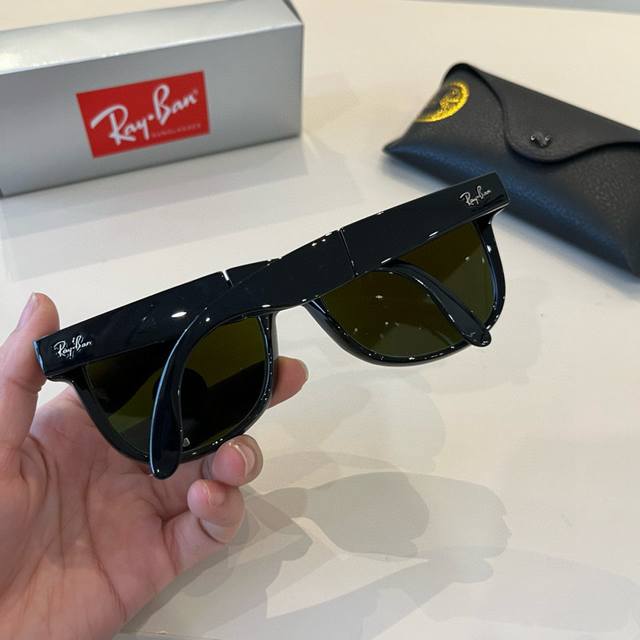 / 雷朋潮男型女炸街款墨镜,玻璃镜片型号Rb4105。折叠款