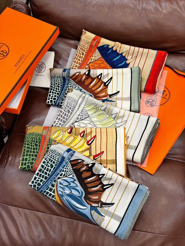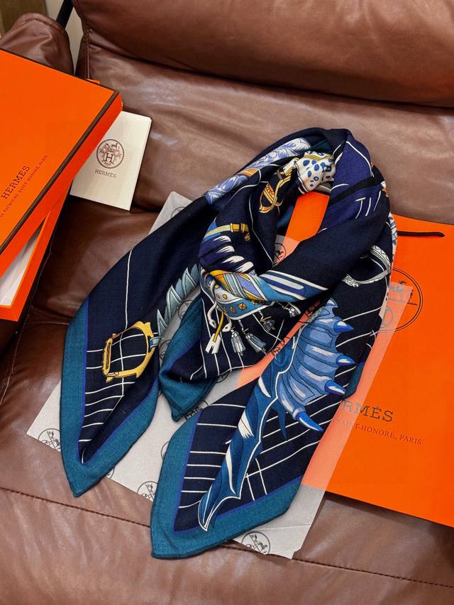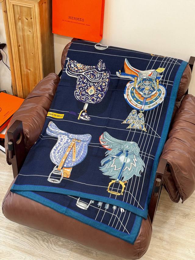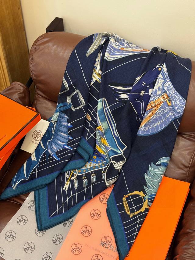 / 鞍上世界”140丝绒方巾双面同色 手工卷边丝绒方巾 30%真丝70%羊绒 这款披肩的经典单品展现强大而迷人的女性魅力精髓。此140丝绒方巾推陈出新,诠释无限的情