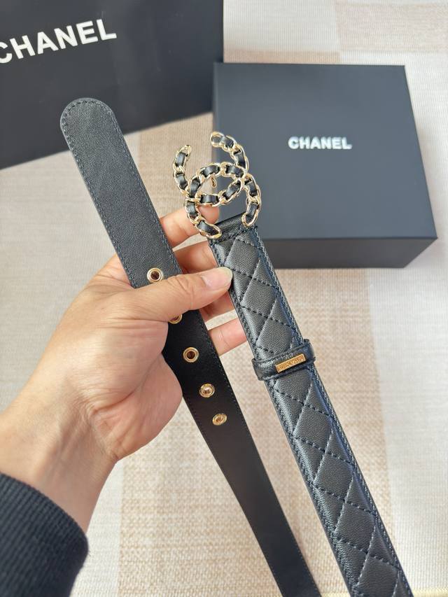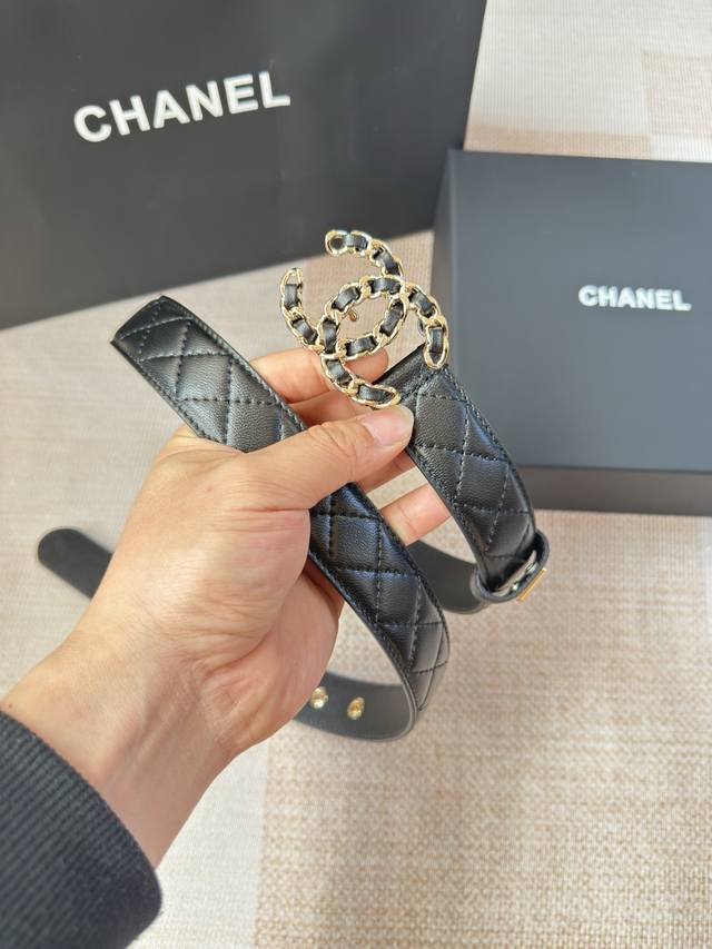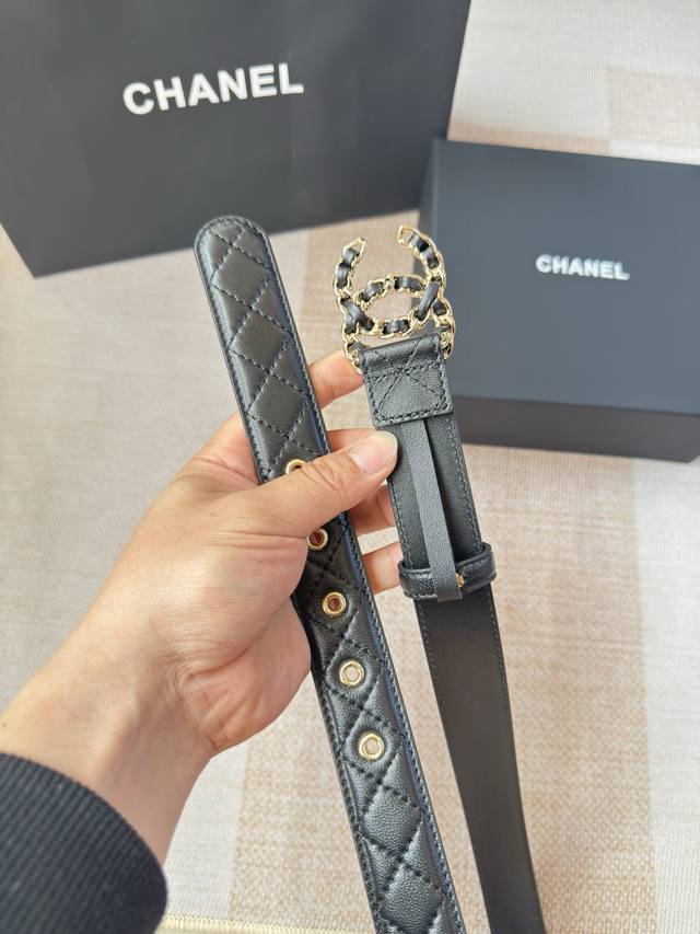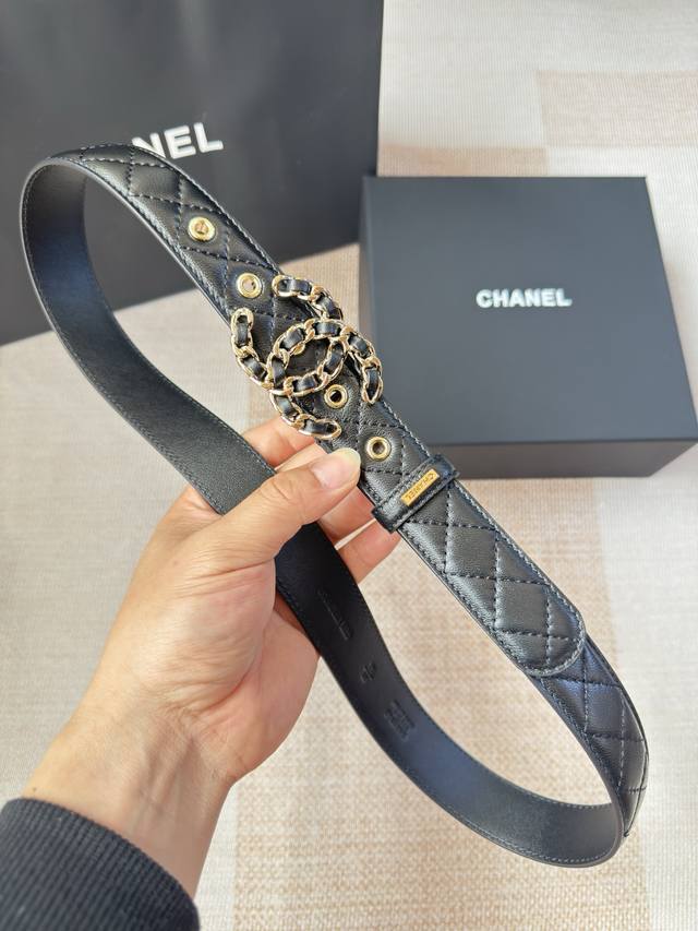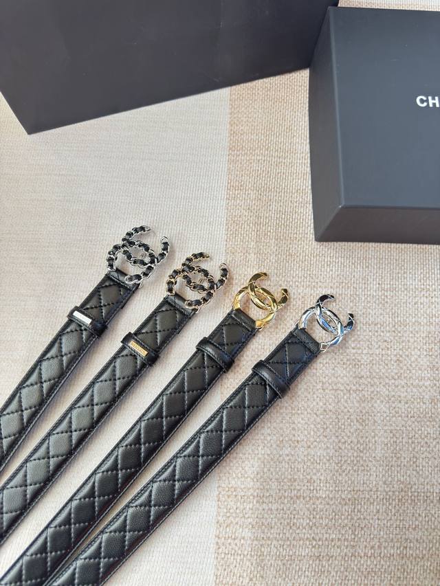 香家新款女士腰带 经典金属双C字母标志,采用菱格羊皮,羊皮质感超柔软,五金扣头做工非常好,显示腰型,巨百搭,搭配裙子 风衣 牛仔裤都很奈斯. 宽度30Mm