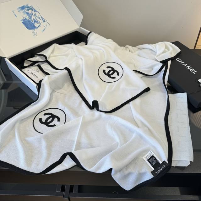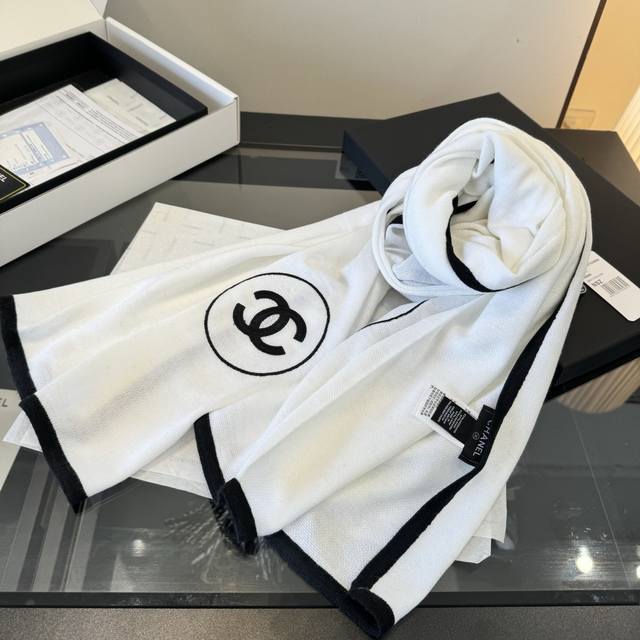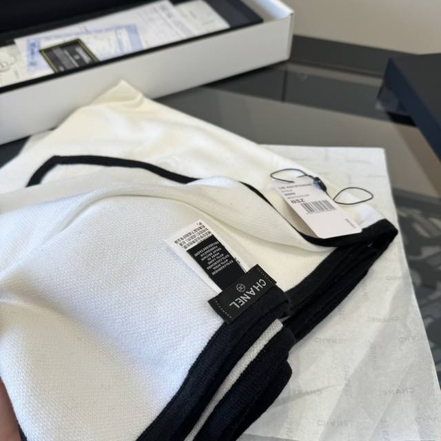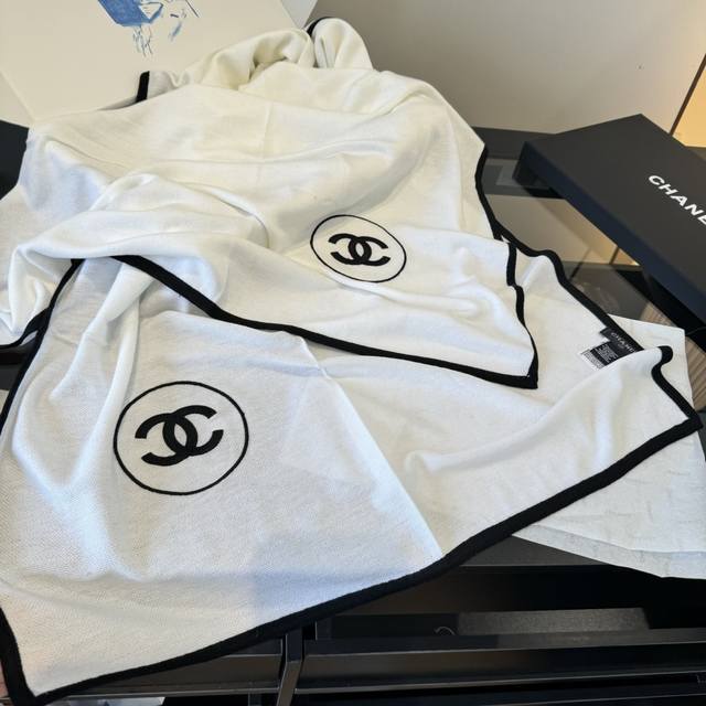 高版本 超经典围巾 丝羊绒披肩 白色 一眼就能认出的“双C”刺绣 Logo,百搭经典 Size:100X200Cm 70%羊绒30%真丝 面料柔软轻盈,适合四季