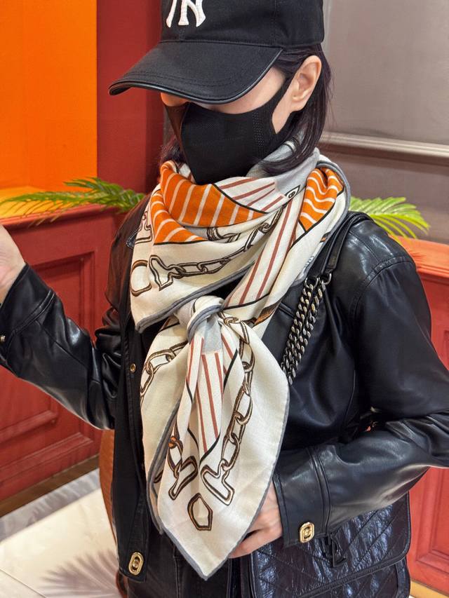 / 2025年早秋上新 双面同色丝绒方巾 手工卷边山羊绒和真丝混纺披肩 70%羊绒,30%桑蚕丝 这款披肩采用经典山羊绒和真丝混纺面料,柔软轻盈,佩戴方便。空调房必