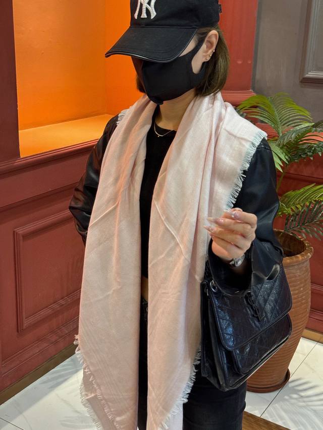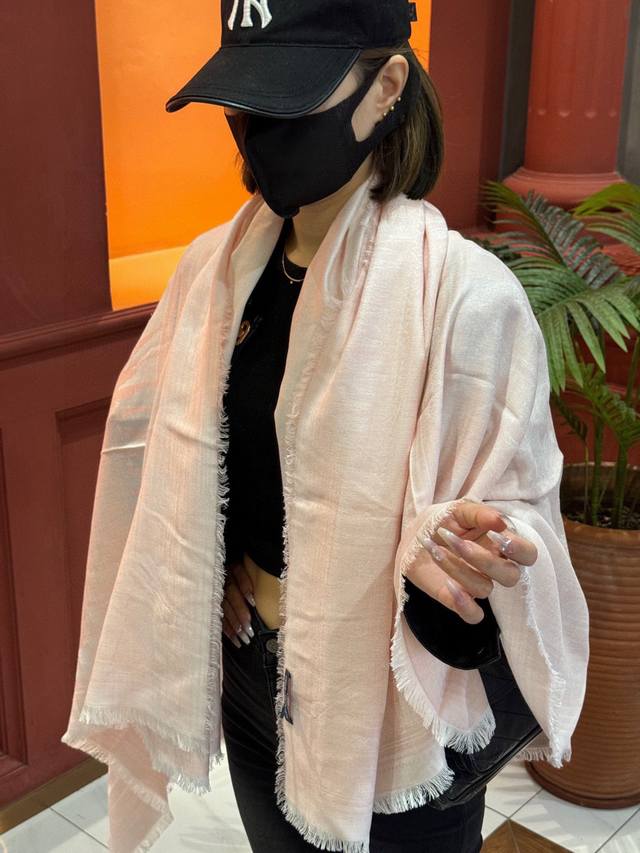 彩色小Logo羊绒围巾 整条围巾采用的是精细羊绒加真丝编织混纺 轻薄款 手感非常软糯舒服...