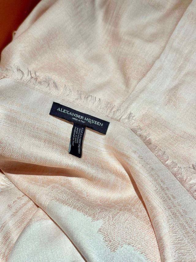 Alexander Mcqueen超有特色拼接交错图案围巾。喀什米尔羊绒手感超级超级柔软舒适,奢华有质感,色泽新鲜浓郁,非常好看,精致又有名媛气质!纯手工精细拆