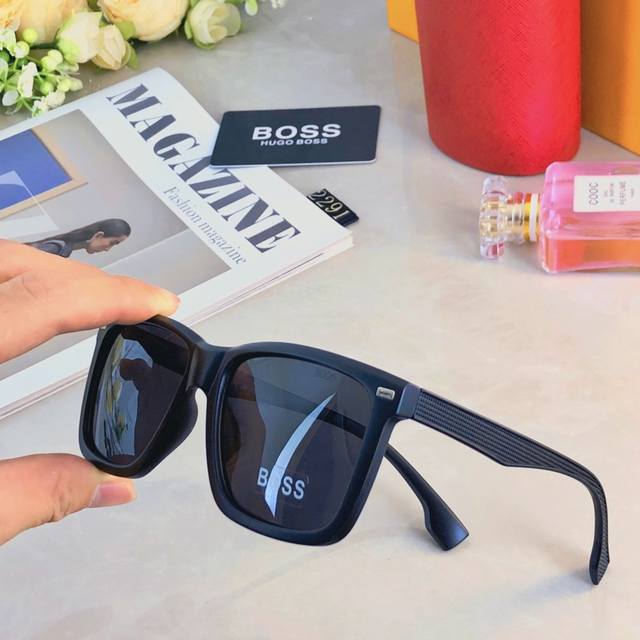 / Bos*韩版方形大框茶棕色墨镜女潮圆脸显瘦街拍遮阳防紫外线太阳眼镜男