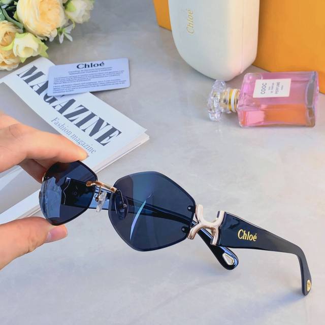 / Chlo*凹造型金属大框棱形墨镜女时尚显脸小防紫外线太阳眼镜