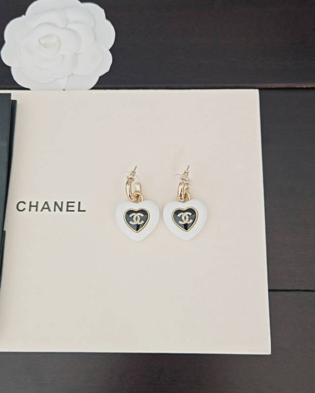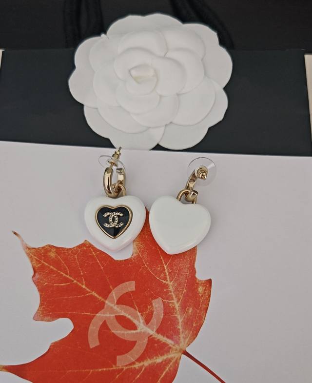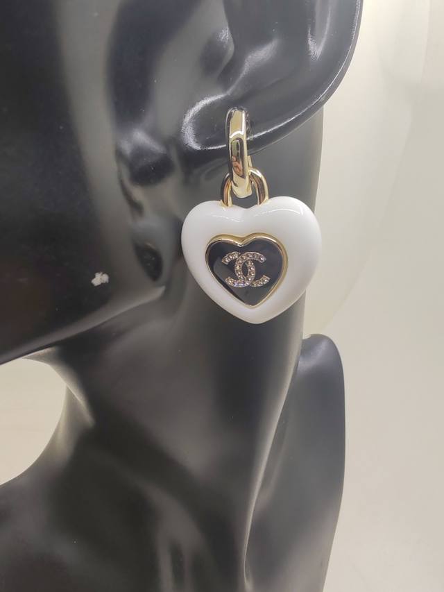 Ch*Nel 最新款黑白双色爱心耳钩 一致Zp黄铜材质