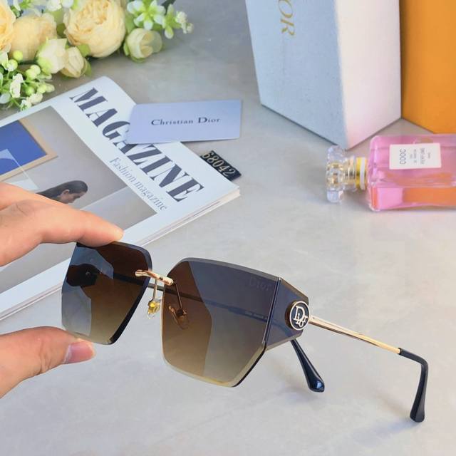 / Dio*新款无框切边方形太阳镜时尚墨镜女欧美潮流太阳眼镜