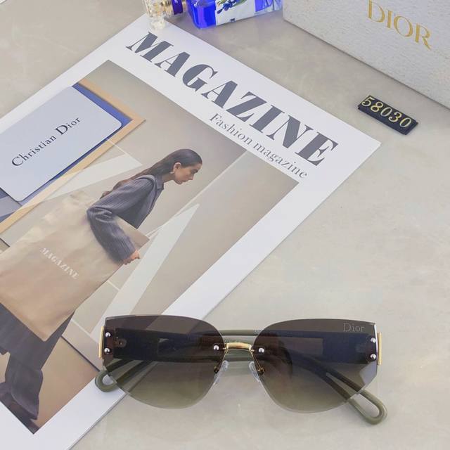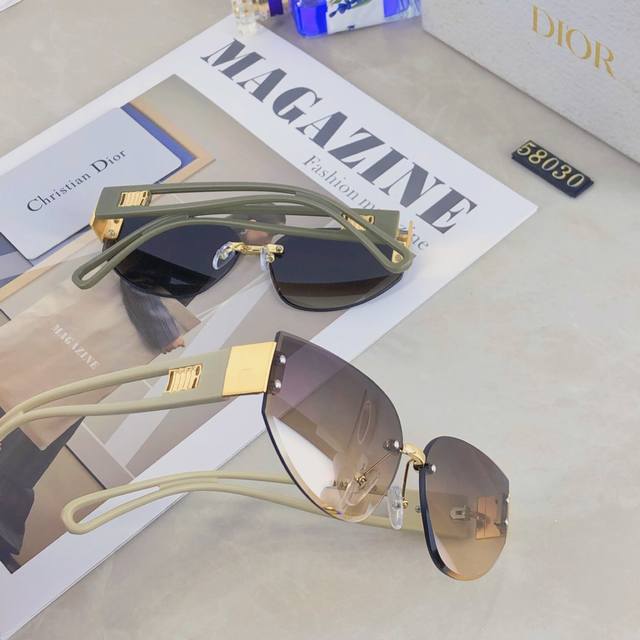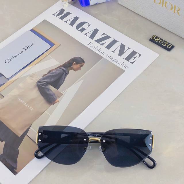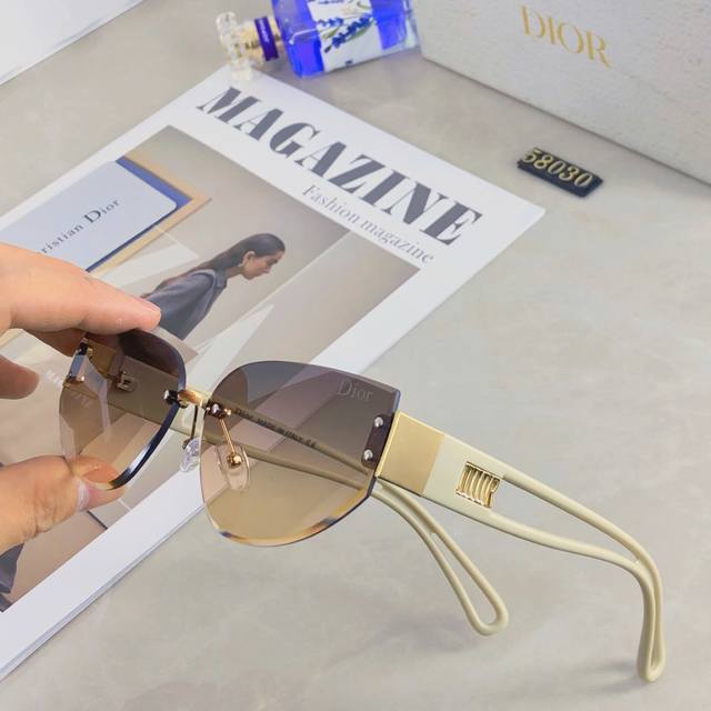 / Dio*2025时尚个性前卫欧美女防紫外线猫眼无框拼色腿宽腿墨镜太阳眼镜
