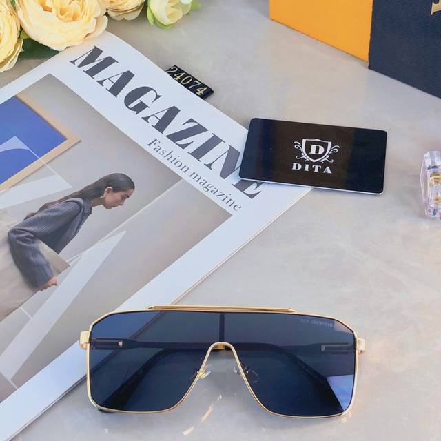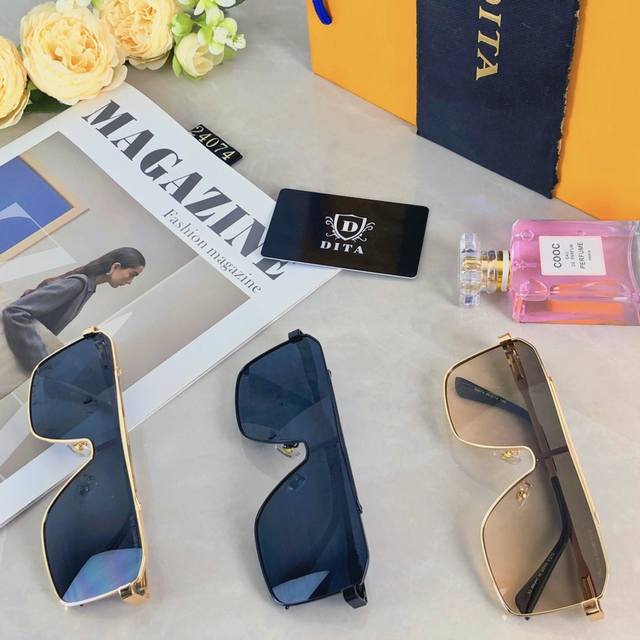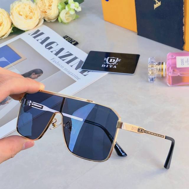 / Dit*新款连体一片式太阳镜时尚欧美个性金属大框太阳眼镜潮人驾驶墨镜