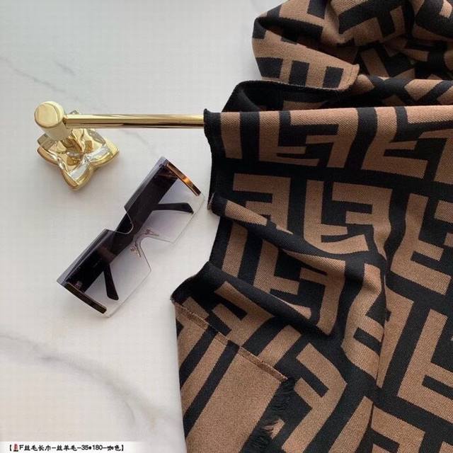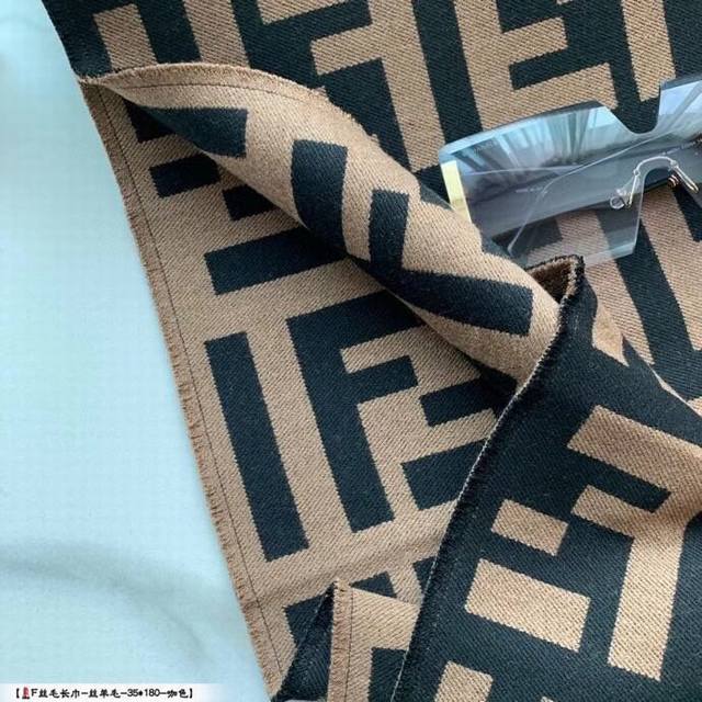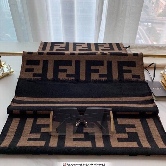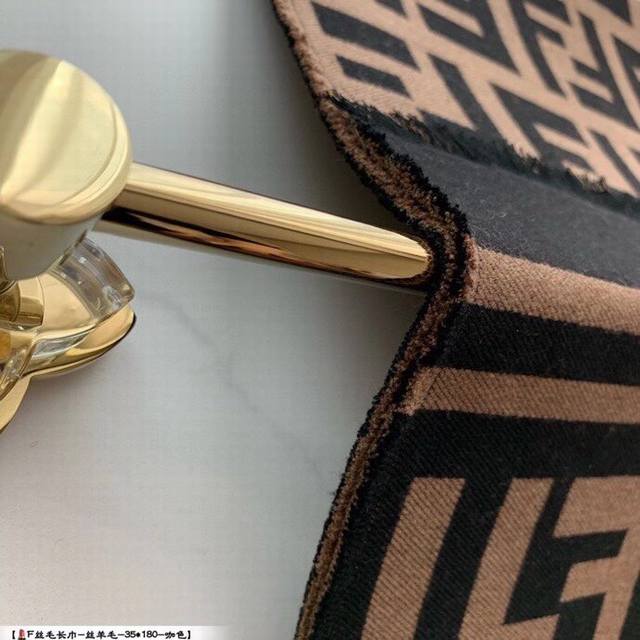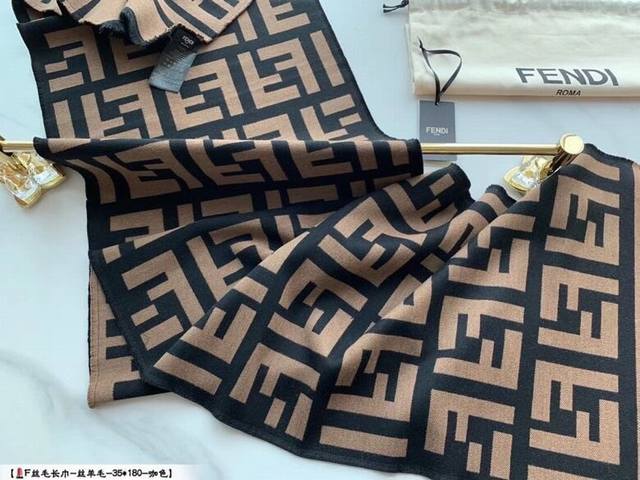 fend*专柜万年经典 咖啡色 专柜95%羊毛 5%真丝 尺寸:40*180Cm