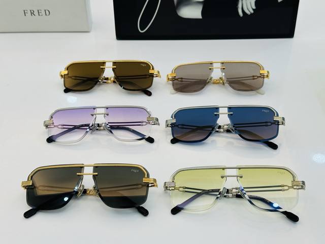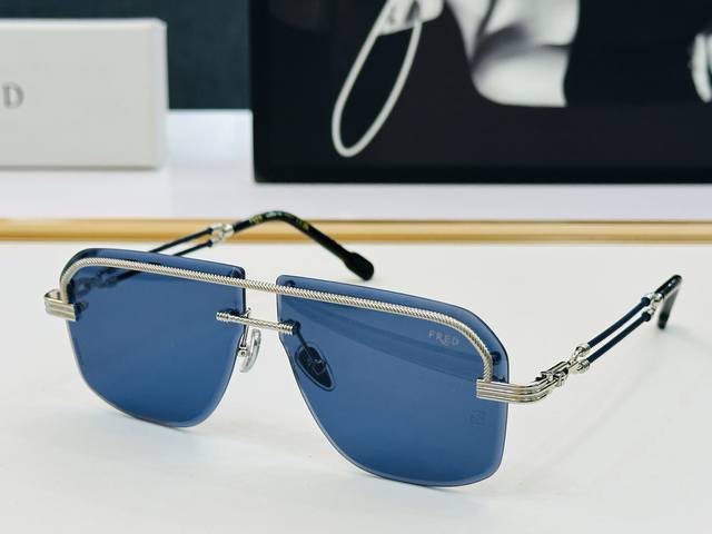/ Fred法兰 Fg50170U Size:61口10-145 醒目品牌Logo扣扣 B上脸超美 太阳镜 内镀蓝膜