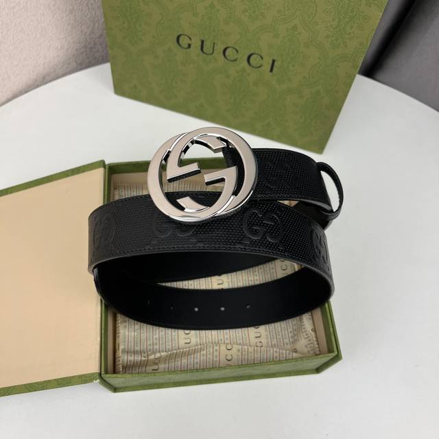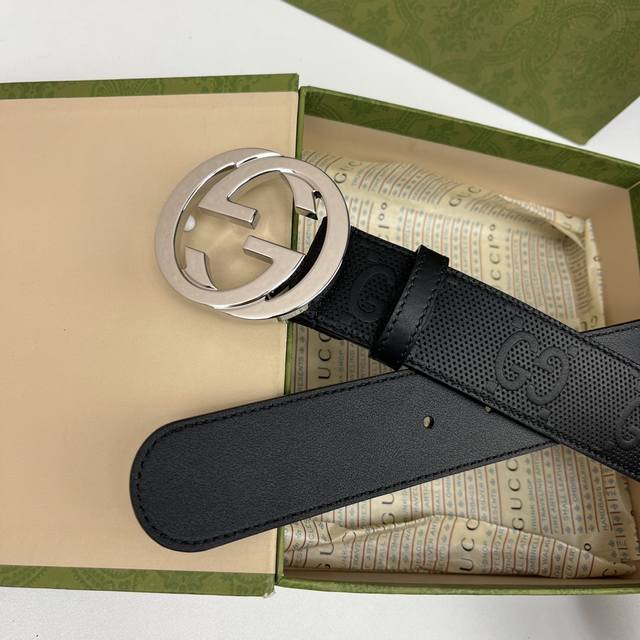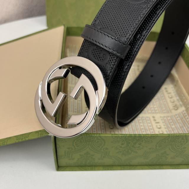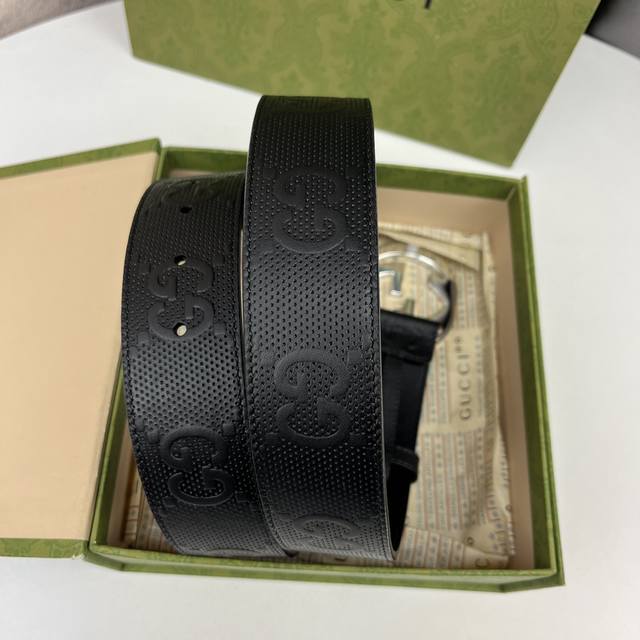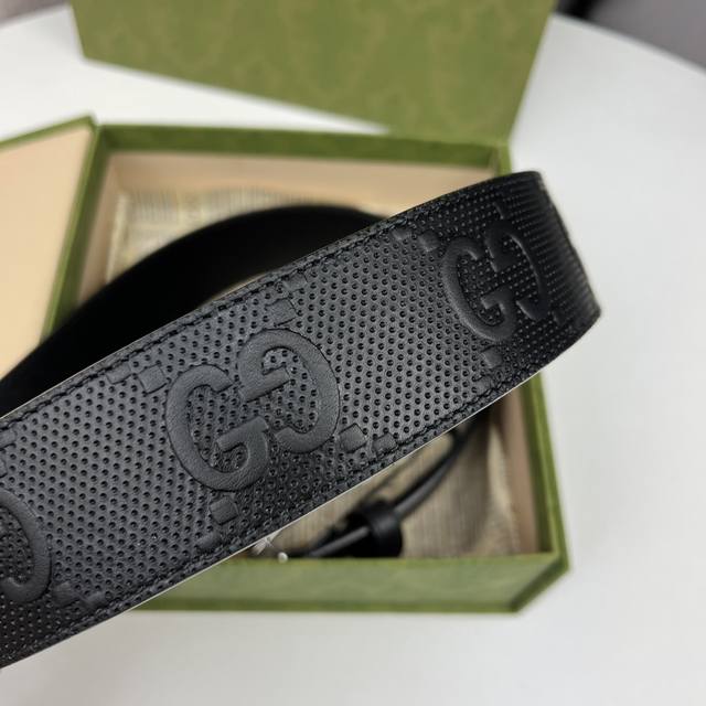 G家宽度4Cm意大利进口皮料 皮料,专柜新款浮雕冲孔压花,搭配复古双G扣,时尚百搭款!顶级