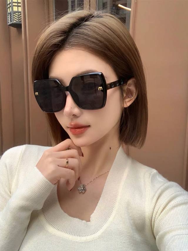 Miumi*墨镜女款太阳镜高级感2025新款大框圆脸显瘦Ins街拍个性防紫外线 DDD
