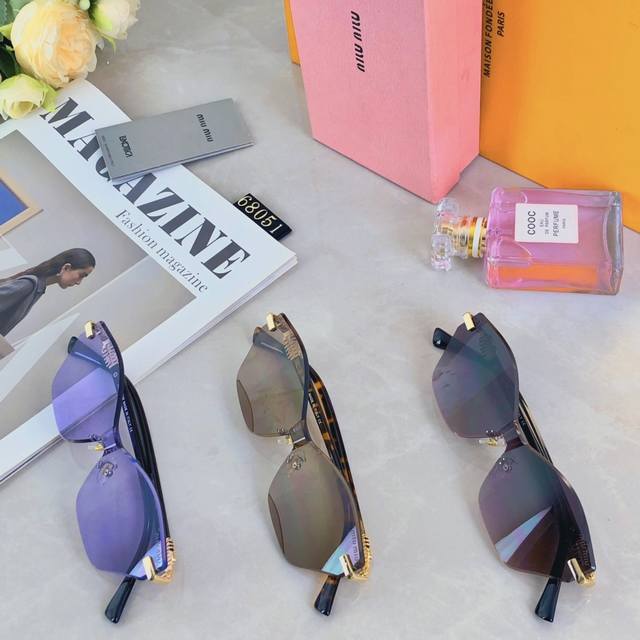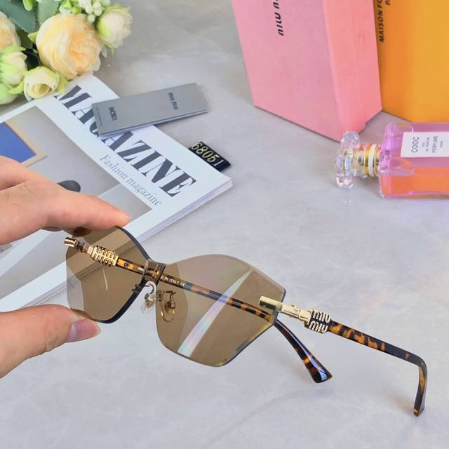 Miumi*复古港风金属细金边太阳眼镜潮酷棱形防紫外线高级感眼镜