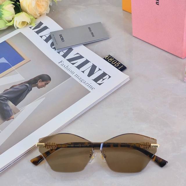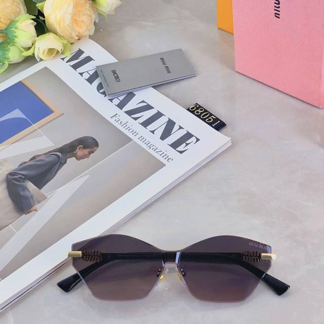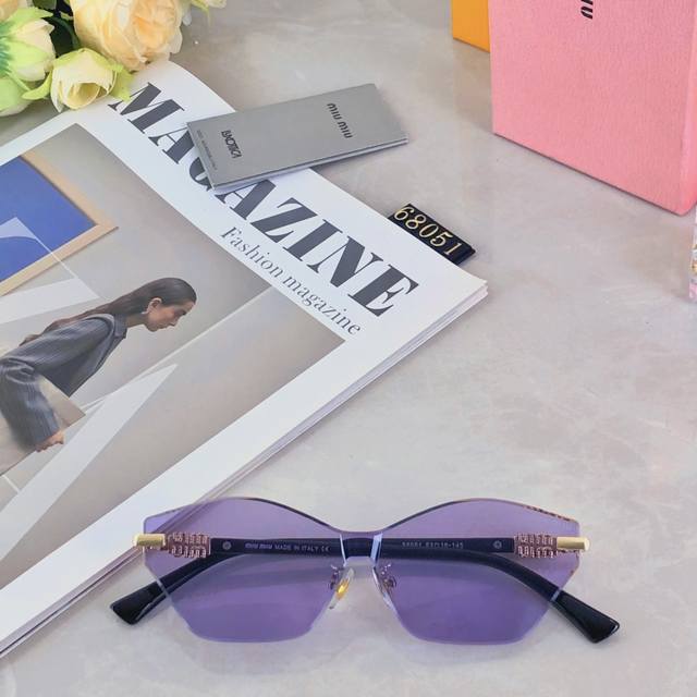 Miumiu太阳墨镜超显脸小的墨镜 Miumiu 开春新品 大方框墨镜 独立字母嵌钻 高品质值得拥有 Mod: Smuo7S Size : 54-20-140