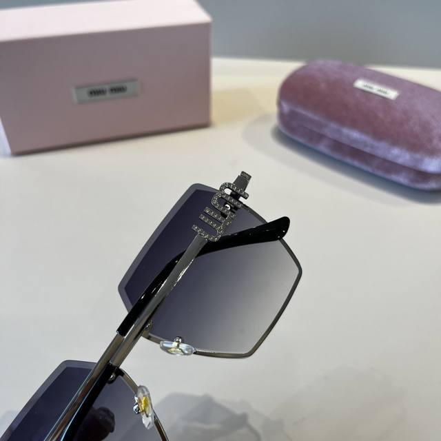 缪缪Miumiu新款太阳镜,高级感无框太阳镜女款防紫外线开车专用大脸显瘦连体眼镜