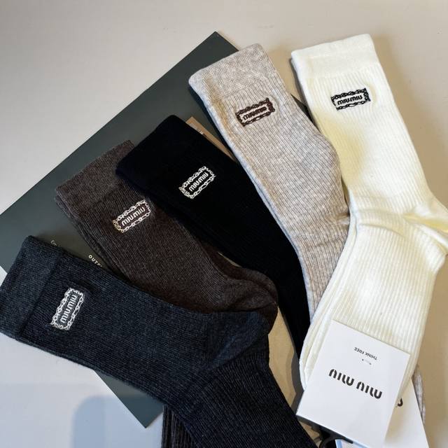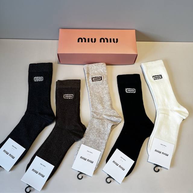/ Miumiu缪缪 新款早秋长筒袜,款式经典,时尚高级!大牌出街,潮人必备,颜色百搭 一盒5双